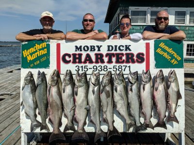 Lake Ontario Charters out of Henderson Harbor, NY with Capt. Bob Dick fishing for King Salmon, brown trout, lake trout, walleye and bass. We specialize in having fun and catching fish whether you are a first timer or a seasoned angler. Captains Bob, Shawn and first mate Tony have fished the eastern end of lake Ontario their entire lives. 4-6 or 8 hour trips available www.mobydickcharters.com